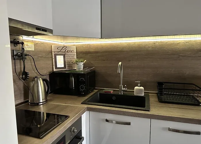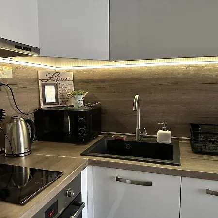 Dispone de una cocina completa con un horno de microondas, un hervidor eléctrico y nevera. El restaurante Pizza Pizzarela prepara comida italiana para sus visitantes y está a 450 metros. La parada de autobús Yavor está situada a alrededor de 5 minutos andando de esta propiedad.